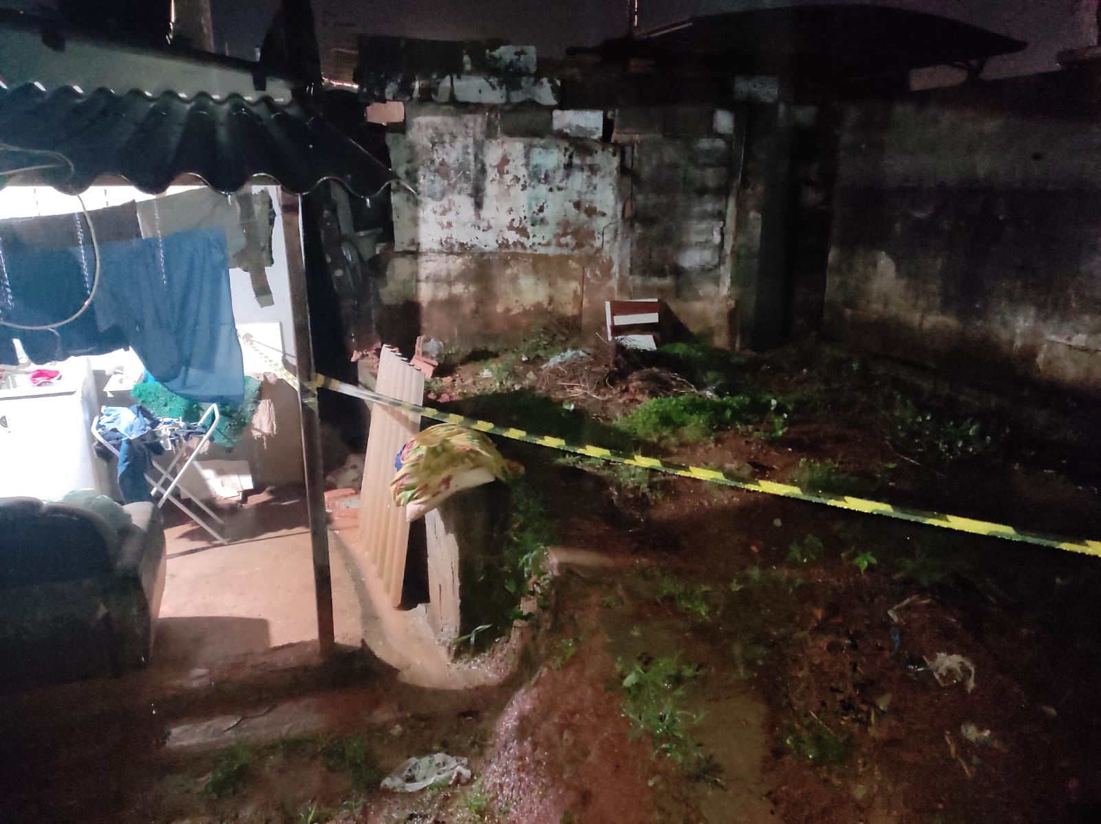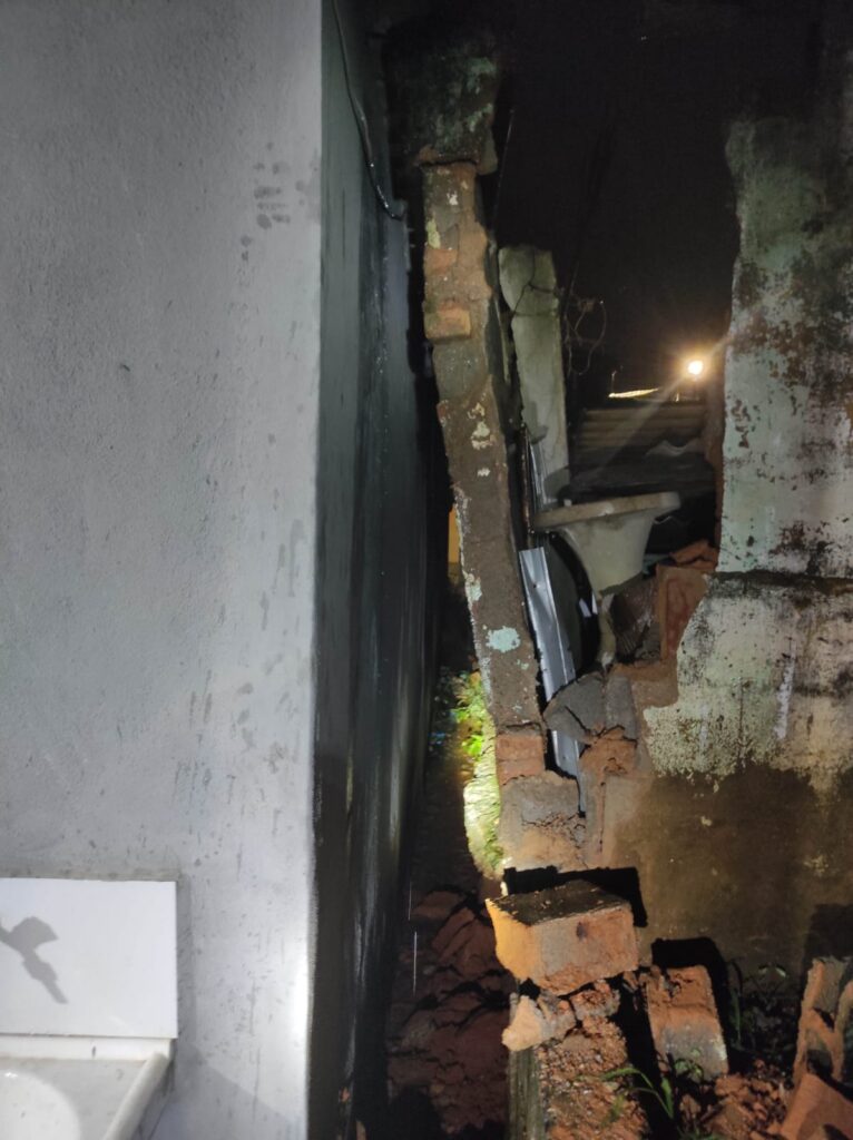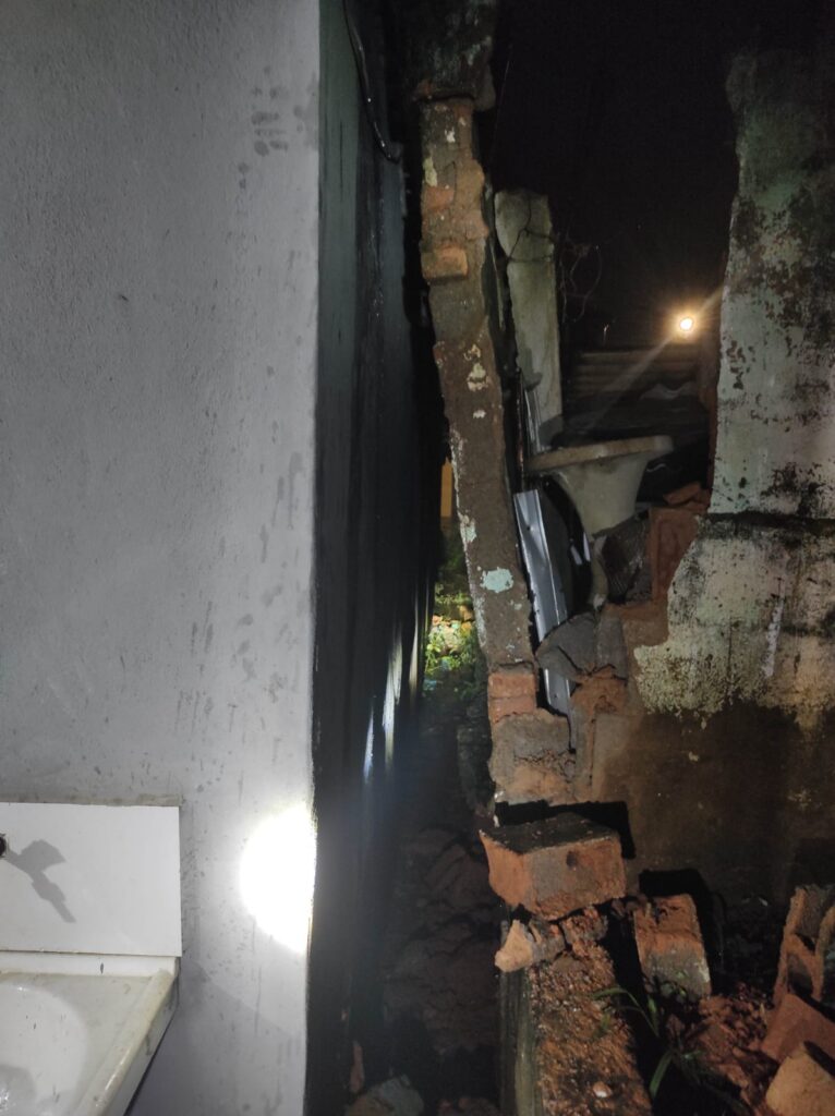 Segundo o Corpo de Bombeiros, o muro que divide dois lotes cedeu e permaneceu apoiado na parede da casa vizinha, gerando risco de desabamento. Apesar da situação, ninguém ficou ferido e não foram constatados danos estruturais ao imóvel.