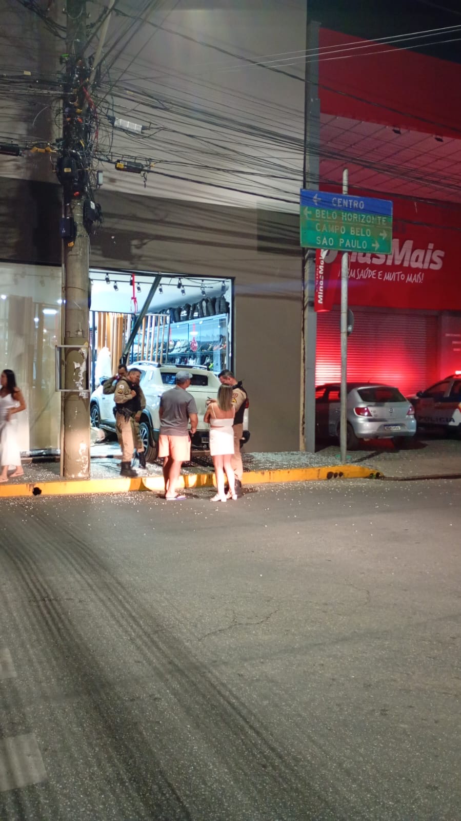 De acordo com a PM, um veículo Fiat Toro seguia pela Rua Coronel José Gonçalves D’Amarante e, ao chegar ao cruzamento com a Rua Barão de Piumhi, continuou em linha reta, colidindo contra a entrada de um estabelecimento comercial. Com o impacto, o carro invadiu o interior da loja.