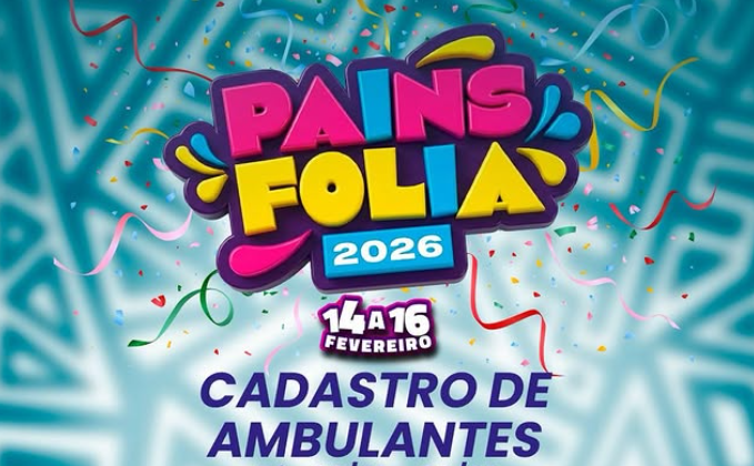A Prefeitura de Pains abriu o período de cadastro para ambulantes interessados em atuar durante o Pains Folia 2026, que será realizado entre os dias 14 e 16 de fevereiro.