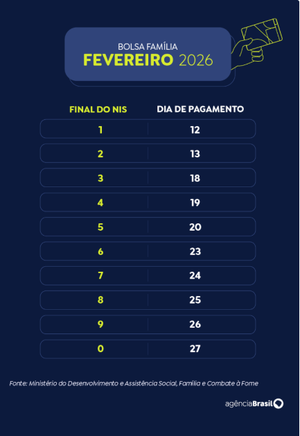 No modelo tradicional do Bolsa Família, o pagamento ocorre nos últimos dez dias úteis de cada mês. Por causa do carnaval, os beneficiários de NIS de fim 1 e 2 receberam na segunda semana de fevereiro, com os depósitos sendo retomados nesta quarta.