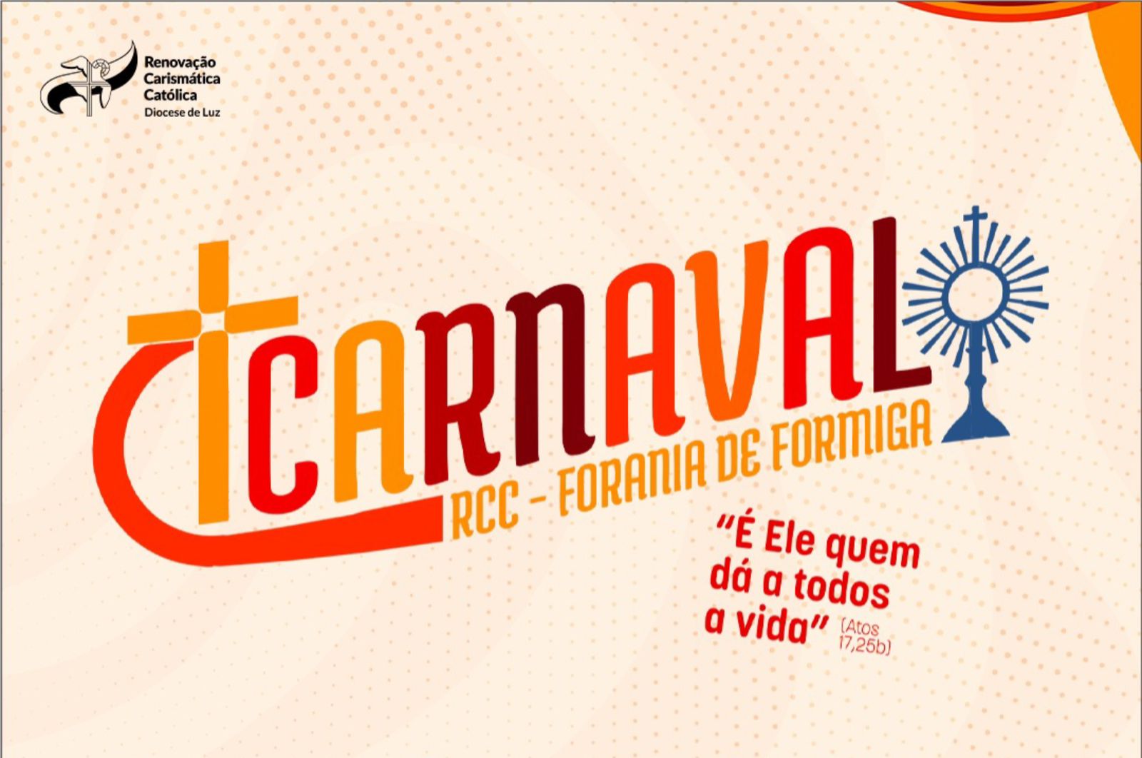 A Renovação Carismática Católica (RCC) da Diocese de Luz, por meio da Forania de Formiga, promove mais uma edição do Carnaval RCC, um encontro de fé, espiritualidade e renovação, com o tema bíblico: “É Ele quem dá a todos a vida” (Atos 17,25b).