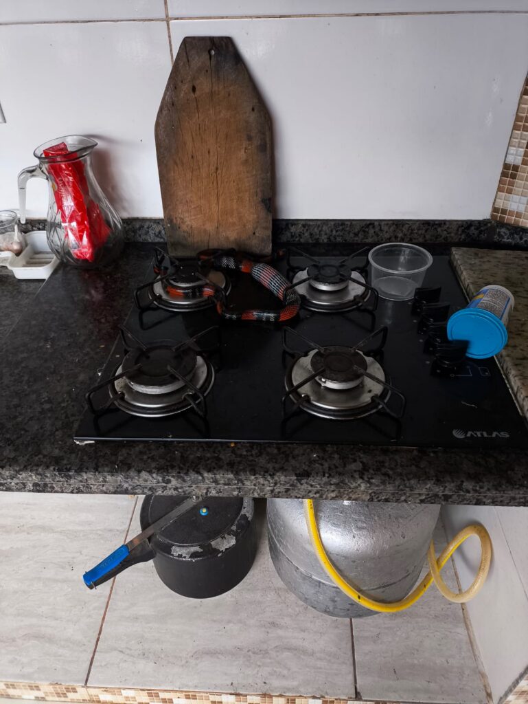 No local, os militares encontraram uma serpente, aparentemente uma cobra-coral, com cerca de um metro de comprimento, posicionada sobre o fogão da residência. Foi observado que o animal havia se alimentado recentemente, sendo perceptível o volume da presa em seu interior.