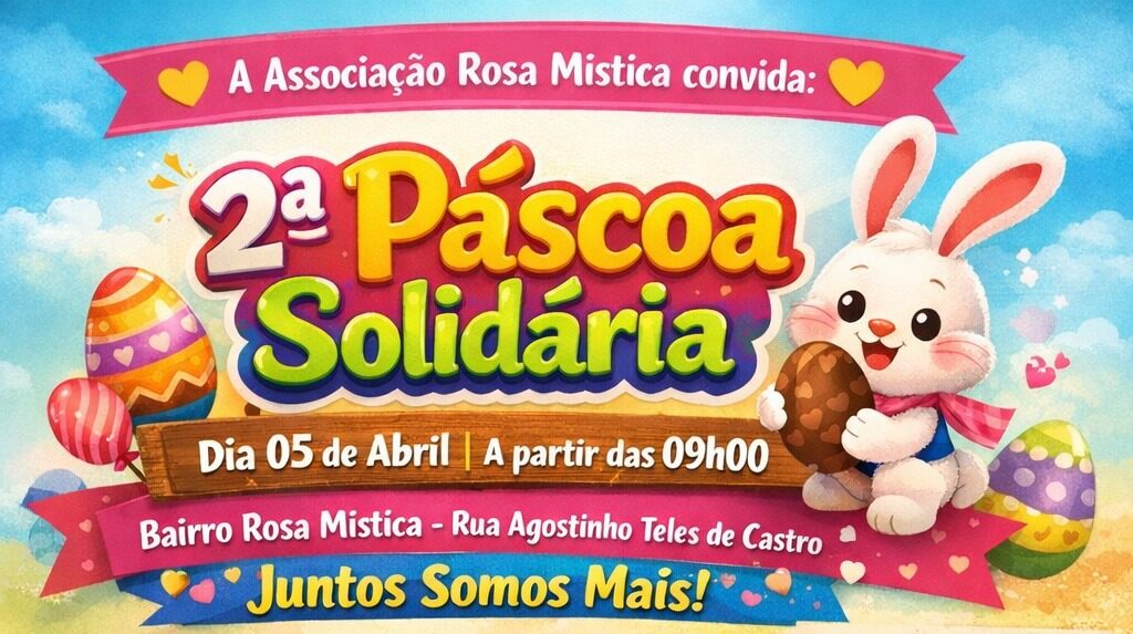 A Associação Rosa Mística realizará, no dia 5 de abril, a 2ª Páscoa Solidária, a partir das 9h, no bairro Rosa Mística, na rua Agostinho Teles de Castro, em Formiga.