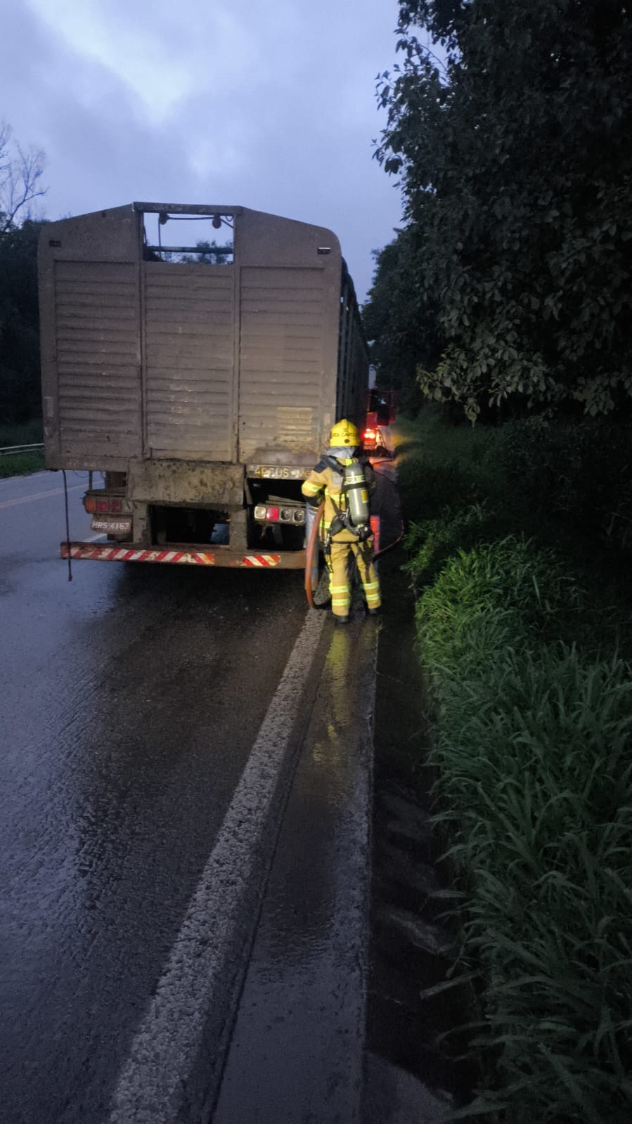 Após a eliminação do risco, o veículo permaneceu no acostamento sob responsabilidade do motorista, aguardando a chegada de guincho. A rápida atuação dos bombeiros evitou maiores prejuízos e garantiu a segurança do condutor, dos animais e dos demais usuários da rodovia.