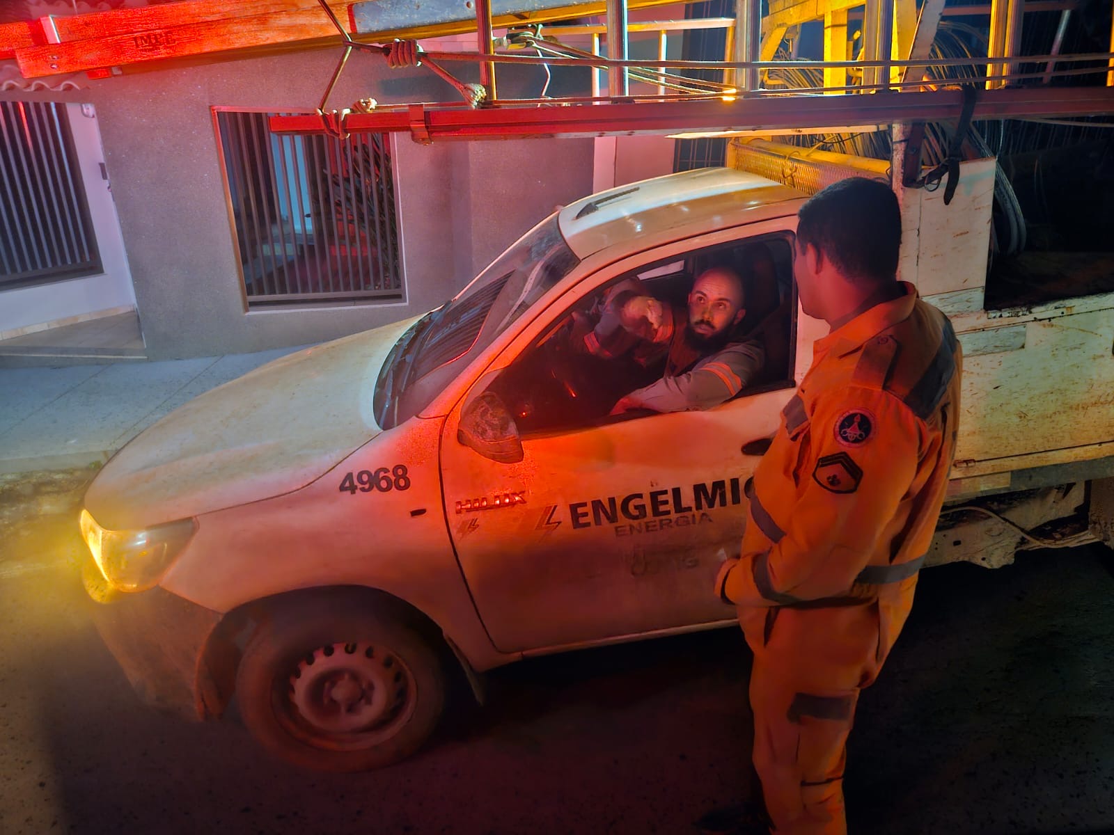 A concessionária responsável pelo fornecimento de energia elétrica já se encontrava presente e realizou o desligamento preventivo da rede, eliminando o risco elétrico. Os bombeiros fizeram vistoria na área para garantir a segurança e orientaram os envolvidos quanto aos procedimentos necessários até a completa normalização do serviço.