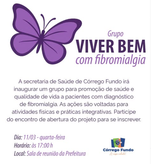 A secretaria de Saúde de Córrego Fundo anunciou a criação de um novo grupo de apoio, voltado para pacientes diagnosticados com fibromialgia. A iniciativa busca oferecer suporte multidisciplinar e promover mais qualidade de vida por meio de atividades e práticas integrativas.
