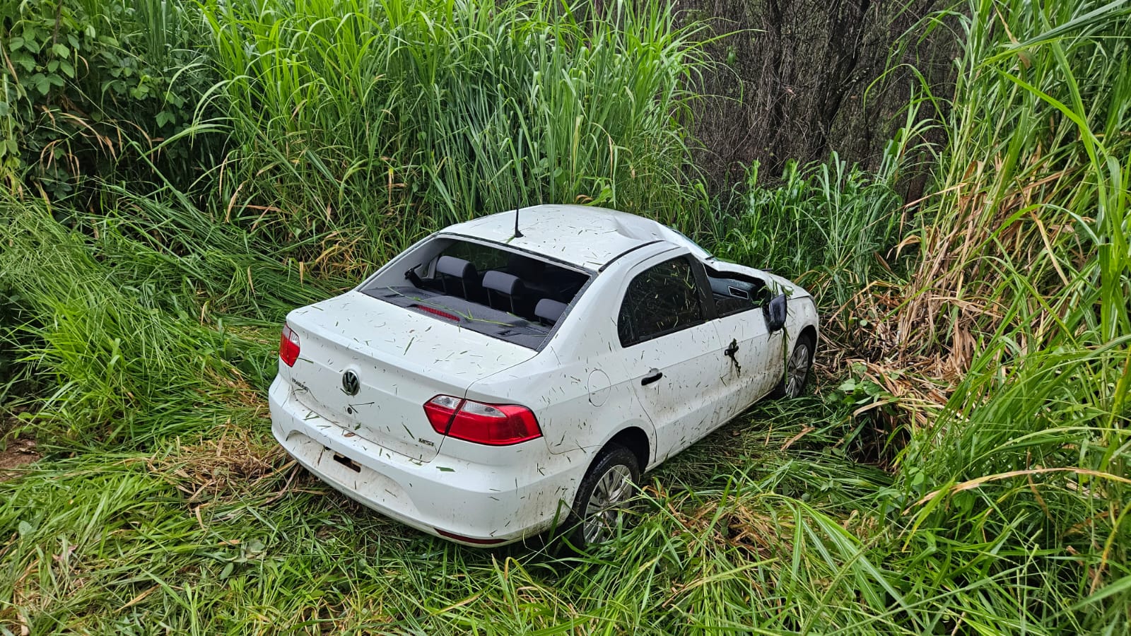 No local, foi constatado que o veículo se encontrava capotado em uma ribanceira às margens da rodovia. A vítima já estava fora do automóvel no momento da chegada da equipe, deambulando às margens da via.