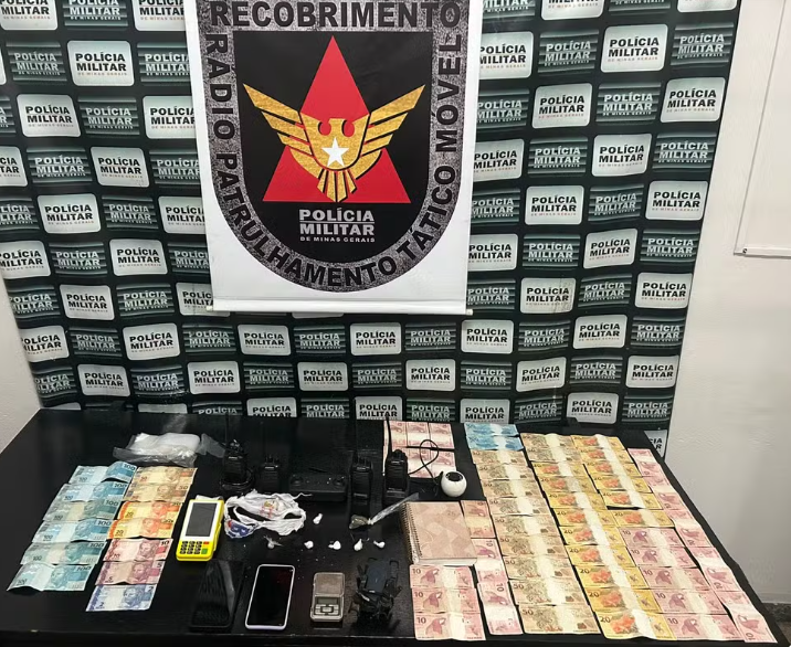 Durante a abordagem no interior do imóvel, os militares encontraram drogas, dinheiro, balança de precisão, celulares, rádios comunicadores, máquina de cartão, materiais usados para o fracionamento de entorpecentes e cadernos com anotações relacionadas à administração financeira.