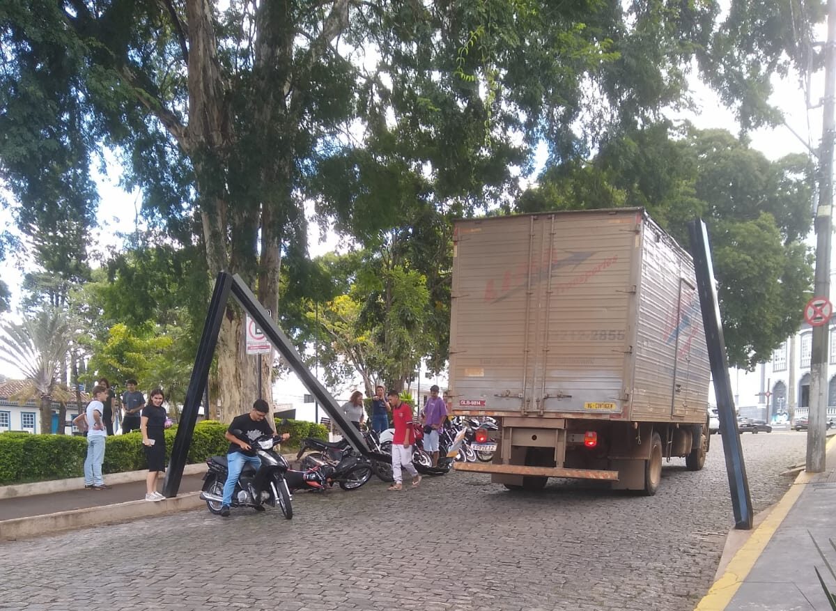 O pórtico havia sido instalado recentemente com o objetivo de restringir a circulação de veículos com altura superior a 3,20 metros na região central. No entanto, o caminhão acabou acessando o trecho e atingindo a estrutura, que não resistiu à colisão.
