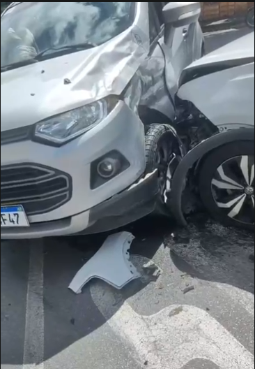 De acordo com relatos de testemunhas, o condutor de um carro estaria parado no sinal quando, repentinamente, acelerou de forma brusca. Ainda segundo as informações, o veículo arrancou com força, chegando a “cantar pneu”, atravessou o sinal e acabou atingindo uma motocicleta e um carro que seguia na outra via, um modelo EcoSport.