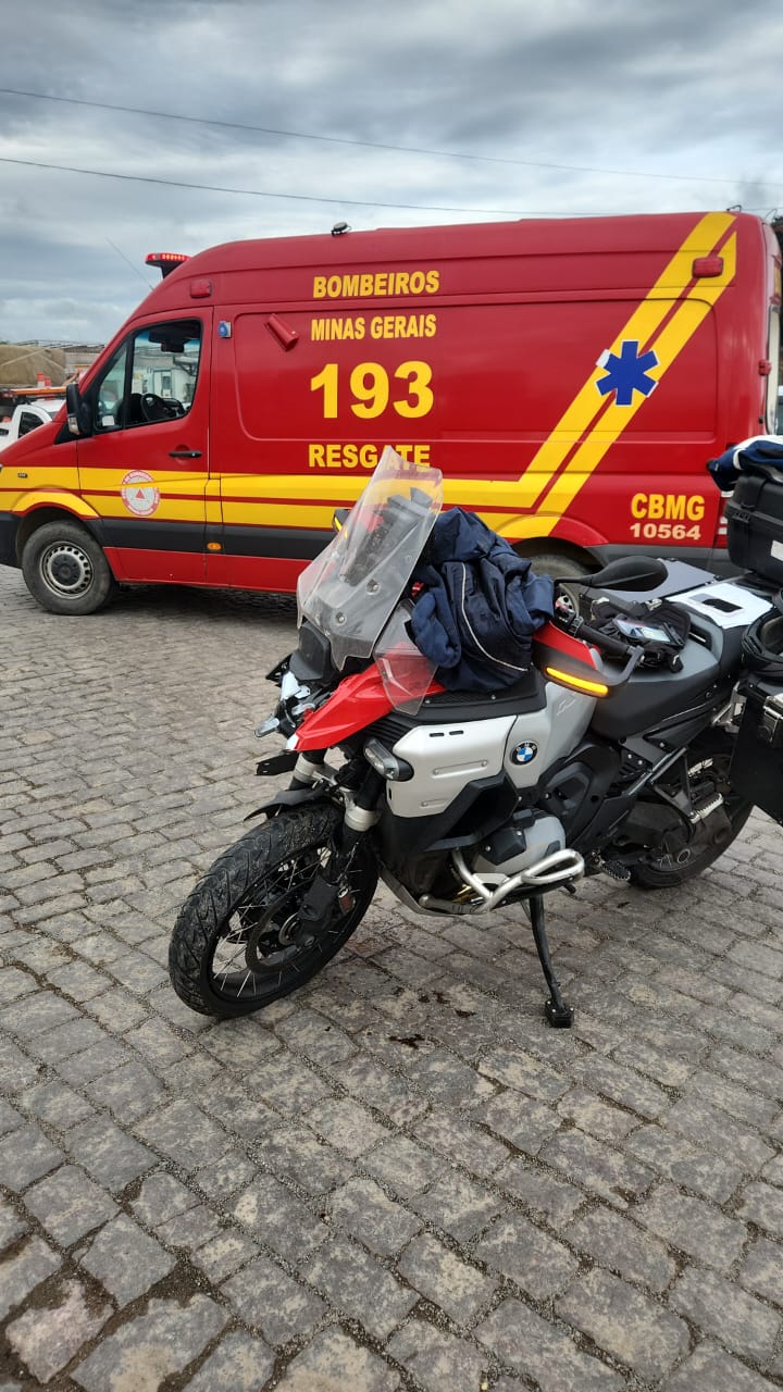 No local, os militares encontraram o condutor da motocicleta – uma BMW R1300 GSA Plus – caído sobre a pista de rolamento. Ele estava consciente, porém confuso, relatando dor no punho direito e apresentando escoriações na face.