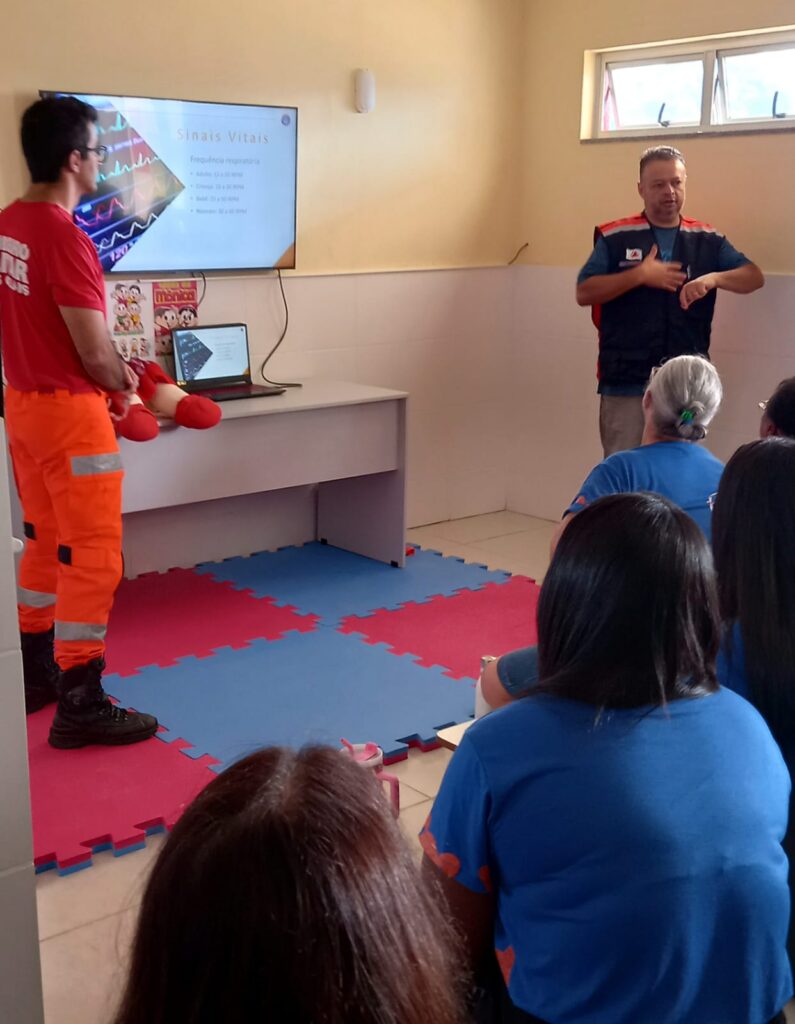 A capacitação foi estruturada em módulos complementares que abrangeram desde a teoria fundamental até simulações de cenários reais. Na frente de primeiros socorros, os funcionários foram instruídos sobre protocolos de avaliação de pacientes e suporte básico de vida, com ênfase em manobras de reanimação cardiopulmonar e procedimentos específicos para casos de engasgos, quedas, traumas, convulsões, fraturas e queimaduras. O foco pedagógico priorizou a agilidade e a precisão técnica necessárias para garantir a integridade física de crianças, funcionários e visitantes da instituição.