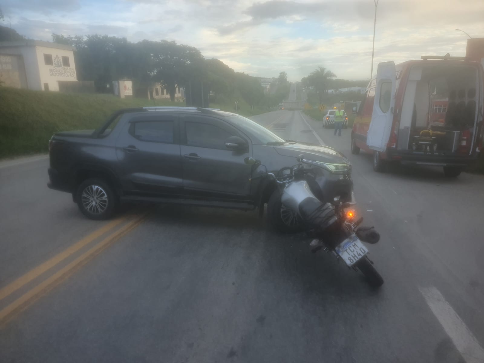 Nesta quinta-feira, 19 de março, uma equipe do Corpo de Bombeiros foi chamada para atender uma batida entre um carro e uma moto na rodovia MG-050, no bairro Souza e Silva, em Formiga. O acidente aconteceu às 09:48 e envolveu um Fiat Strada e uma Honda CG 160.