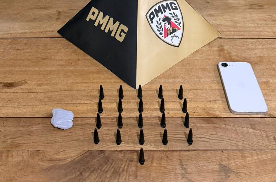 Com autorização da responsável legal, os militares realizaram buscas na residência do menor, onde localizaram 21 pinos de substância semelhante à cocaína e uma porção de substância semelhante à maconha, além de um aparelho celular.