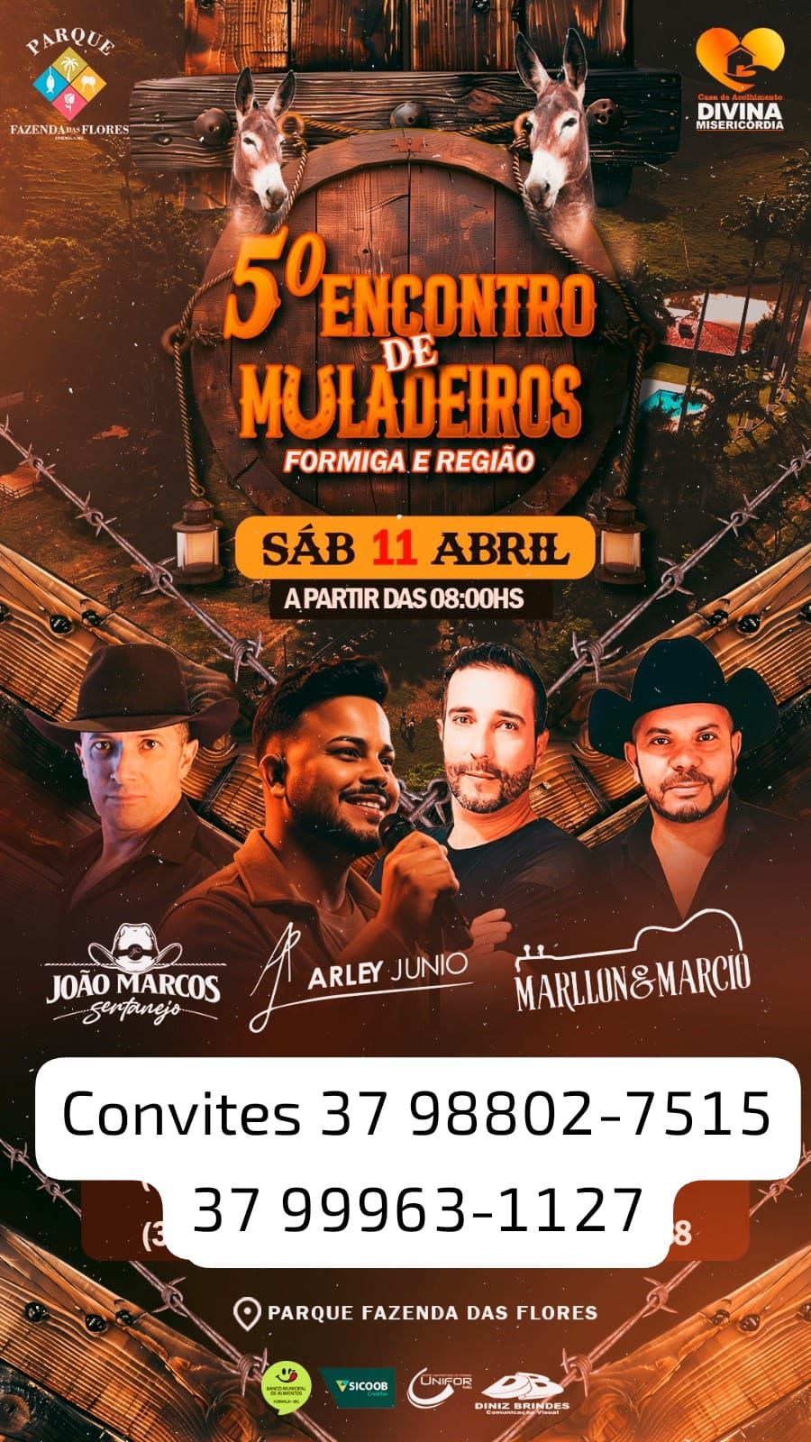 Os interessados podem adquirir convites pelos telefones: (37) 98802-7515 e (37) 99963-1127.