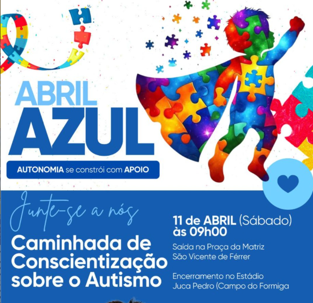 A iniciativa tem como objetivo promover a conscientização sobre o Transtorno do Espectro Autista (TEA), incentivando o respeito, a inclusão e a empatia. Toda a população está convidada a participar deste momento de mobilização e apoio à causa.