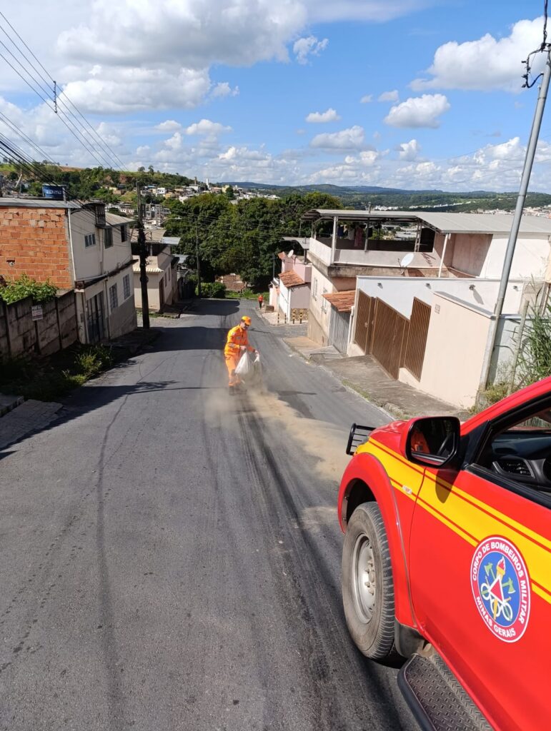 Uma mancha de óleo na pista mobilizou o Corpo de Bombeiros nessa terça-feira (7), após oferecer risco de derrapagem na rua Dona Ana Rosa Lima, no bairro Santa Tereza, em Formiga.