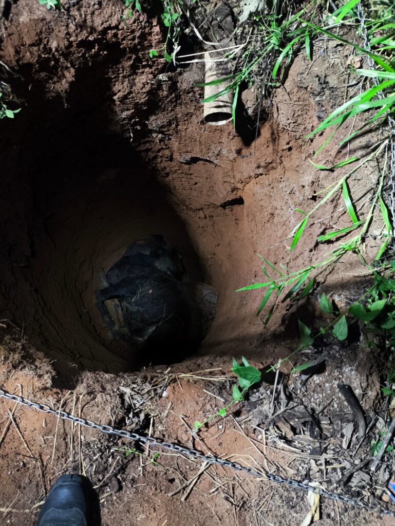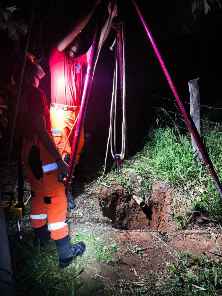 Na sequência, foi feito o içamento controlado do animal, que foi retirado com segurança até a superfície. Após o resgate, o bovino permaneceu sob observação, apresentando recuperação gradual, conseguindo se levantar por meios próprios e retomando a locomoção.