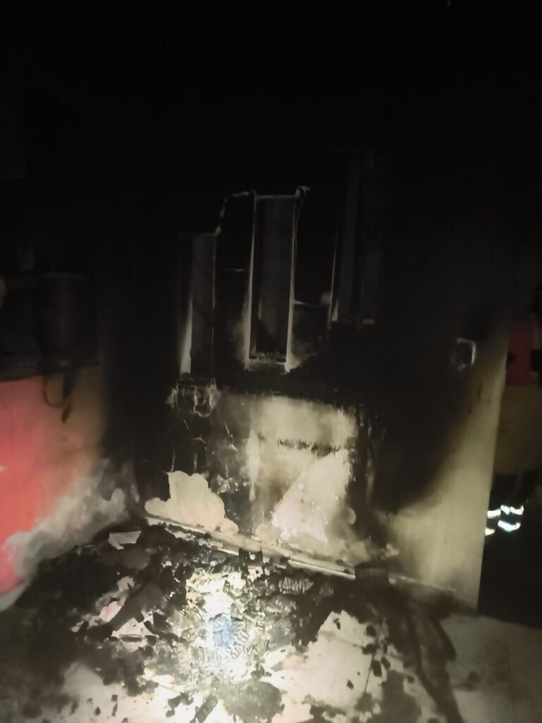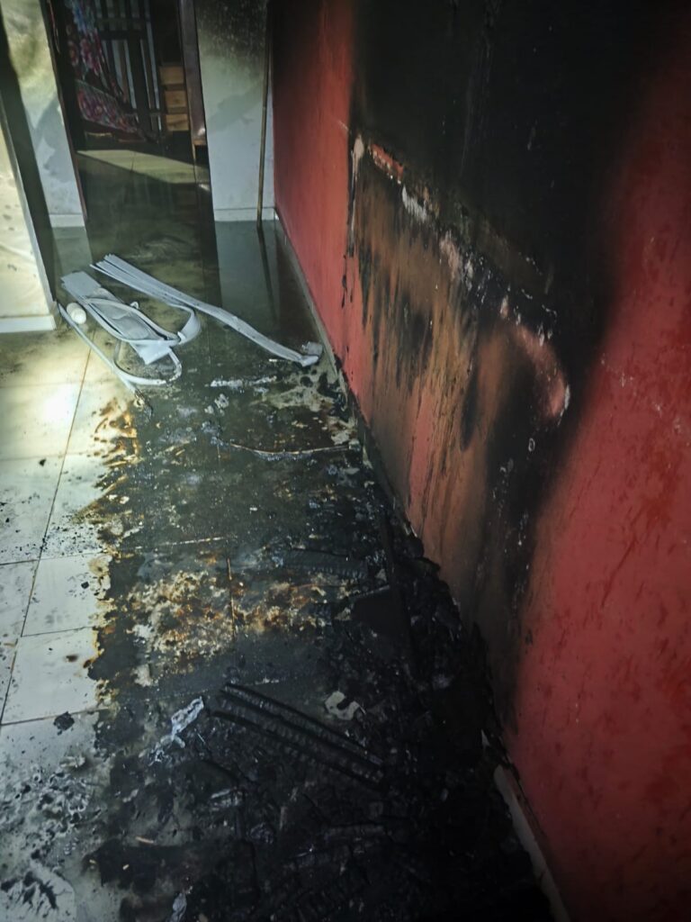 Ao chegarem ao local, os militares foram informados pelo responsável que o incêndio já havia sido combatido por ele, com o uso de mangueira e baldes de água, antes da chegada da guarnição.
