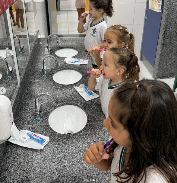 No dia 8 de abril, o CEMEI Sol Nascente recebeu uma atividade coletiva de saúde bucal. A ação contou com a distribuição de kits de escovação, escovação supervisionada e aplicação tópica de flúor.