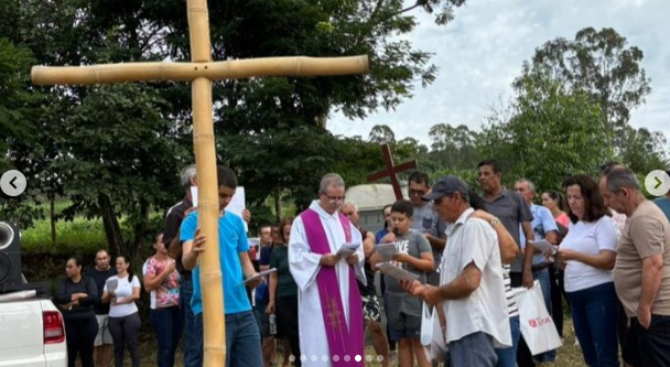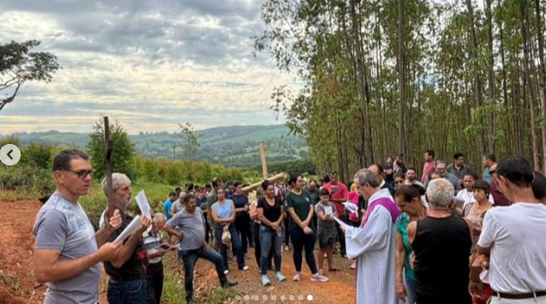 A caminhada fez parte das celebrações da Semana Santa no município e reuniu devotos em um momento de fé e reflexão.