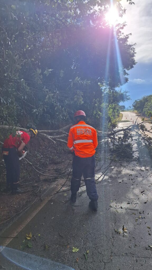 ​Os galhos se desprenderam e ficaram sobre a pista, causando a interdição parcial da via e gerando riscos de acidentes para os motoristas que passavam pelo local. Ao chegarem, os militares utilizaram equipamentos de corte para remover a vegetação e realizar a limpeza da pista.