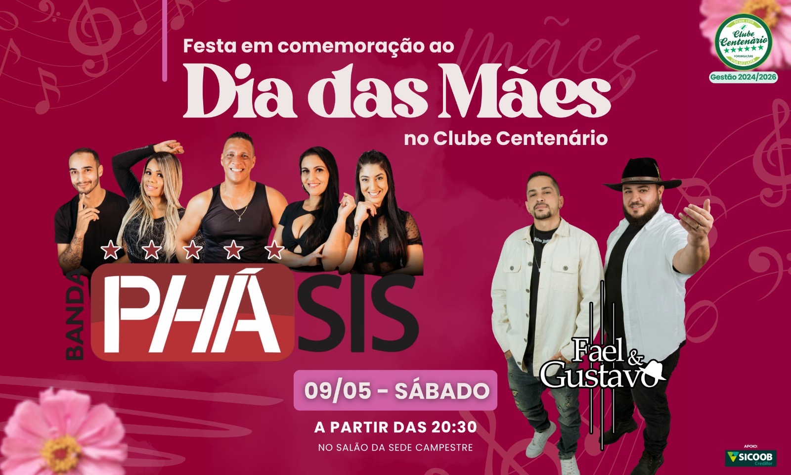 O Clube Centenário prepara uma noite especial para celebrar o Dia das Mães em grande estilo. O evento será realizado no dia 9 de maio (sábado), a partir das 20h30, no salão da sede campestre, reunindo música ao vivo e um ambiente festivo voltado para toda a família.