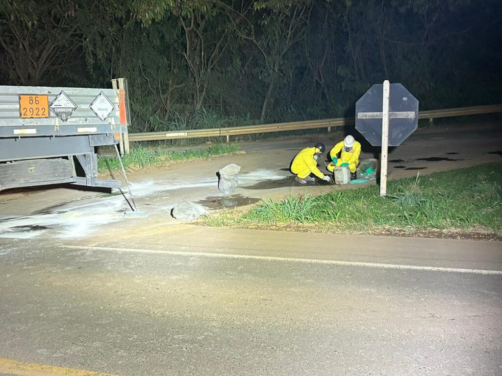 A área foi isolada e monitorada, enquanto a empresa responsável pela carga realizou a contenção do vazamento e a limpeza do material, com apoio de equipes especializadas.