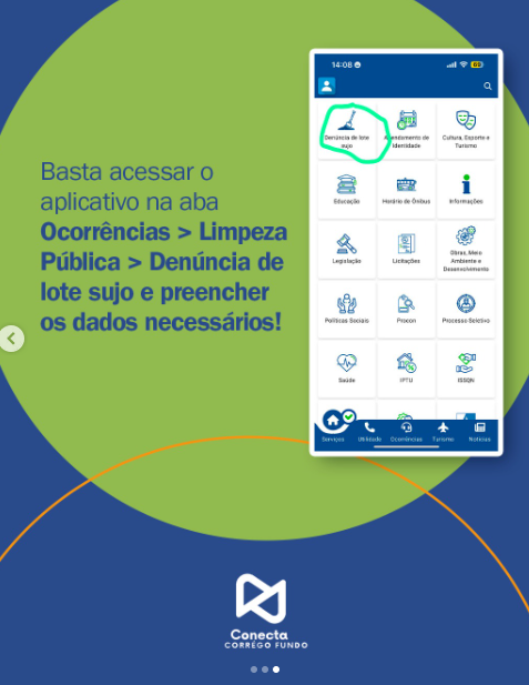 Como Formalizar a Denúncia O procedimento para reportar um lote irregular é direto e deve ser realizado através do sistema oficial de ocorrências. Ao identificar um terreno com acúmulo de lixo ou mato alto, o cidadão deve acessar o aplicativo Conecta Córrego Fundo: