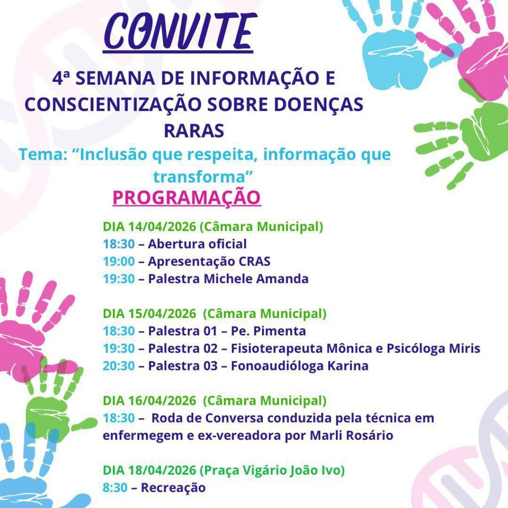 Com o tema “Inclusão que respeita, informação que transforma”, a iniciativa reúne palestras, roda de conversa e atividades recreativas, com o objetivo de ampliar o conhecimento da população sobre doenças raras e fortalecer o debate sobre inclusão social.