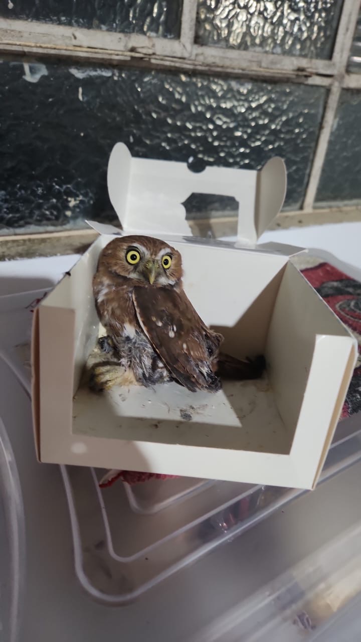 Uma coruja foi resgatada pelo Corpo de Bombeiros após ficar presa em uma armadilha adesiva para captura de roedores, em uma residência no bairro Bom Jesus, em Itapecerica. A ocorrência foi registrada na noite de sábado (18), por volta das 19h46.