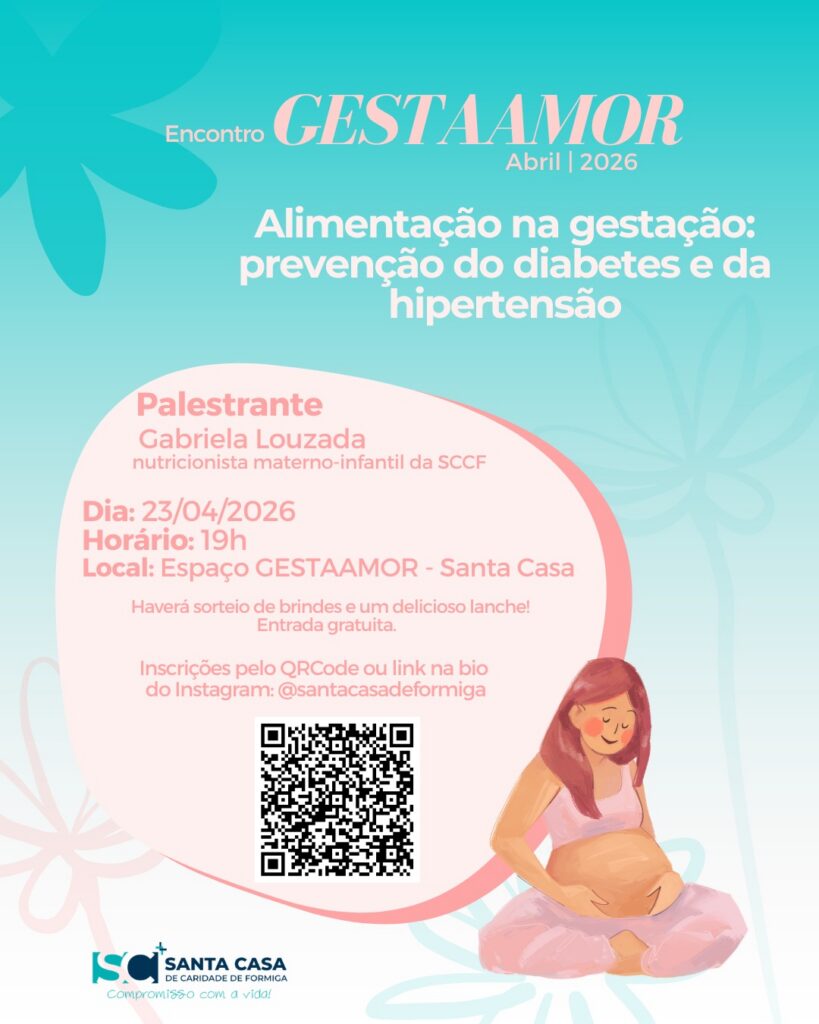O GestaAmor, projeto da Santa Casa de Formiga dedicado ao acolhimento e educação de gestantes, realiza no dia 23 deste mês a primeira edição de 2026. O encontro terá como tema central “Alimentação na Gestação: Prevenção do Diabetes e da Hipertensão”, trazendo orientações práticas para uma gravidez mais segura e saudável.