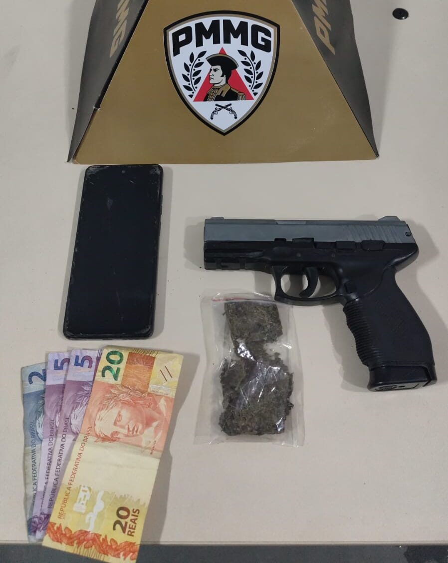 Com base nas informações, os militares iniciaram rastreamento e localizaram o indivíduo em sua casa. Durante as buscas, foram encontrados um simulacro de pistola calibre 9 mm, tabletes de maconha e materiais utilizados para fracionamento e comercialização de entorpecentes.