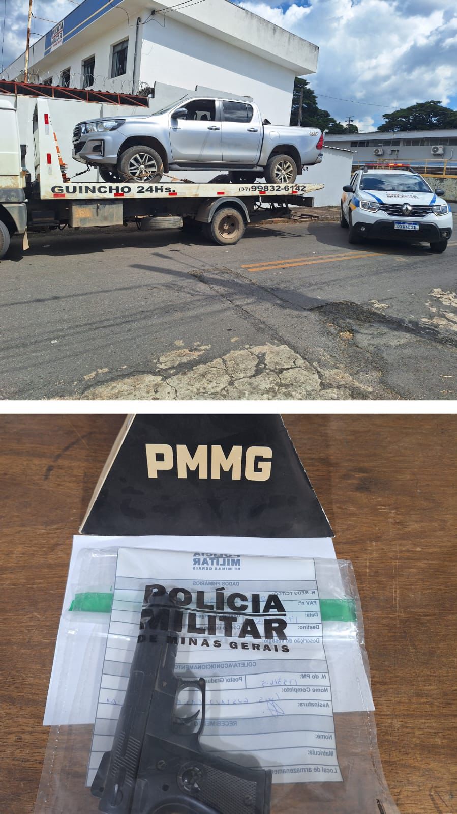 A caminhonete foi removida para um pátio credenciado, onde será submetida a perícia técnica. O autor, juntamente com o material apreendido, foi encaminhado à Delegacia de Polícia Civil para a formalização da ocorrência e demais providências judiciárias.