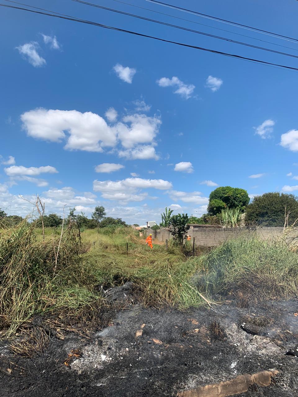No local, a guarnição identificou uma linha de fogo de aproximadamente 30 metros em fase de expansão. O incêndio atingiu vegetação rasteira e arbustos, sendo propagado pelas condições climáticas de alta temperatura e baixa umidade, além da presença de lixo e restos de materiais de construção no terreno. A ausência de aceiros ou medidas preventivas também facilitou o avanço das chamas.