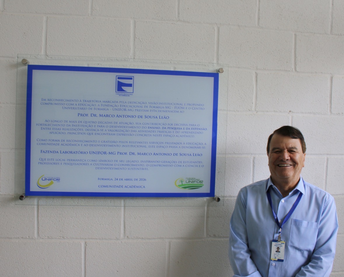 Após mais de quatro décadas dedicadas ao ensino, à gestão acadêmica e à construção de uma instituição sólida, o Prof. Dr. Marco Antonio de Sousa Leão se despede da reitoria do UNIFOR-MG, deixando um legado eternizado de forma simbólica e afetiva. Em reconhecimento aos seus 43 anos de dedicação, no dia 24 de abril, a Fazenda Laboratório da instituição recebeu oficialmente o seu nome, em uma cerimônia marcada por homenagens e surpresas.