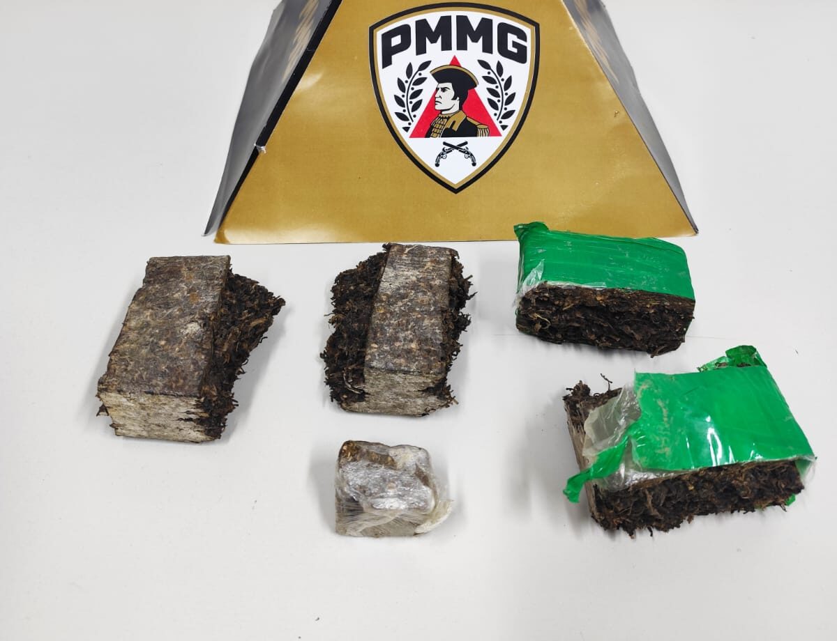 Durante a abordagem, os militares encontraram um tablete de maconha já fracionado e pronto para venda. Em continuidade à ocorrência, um menor informou que havia mais drogas em sua residência.