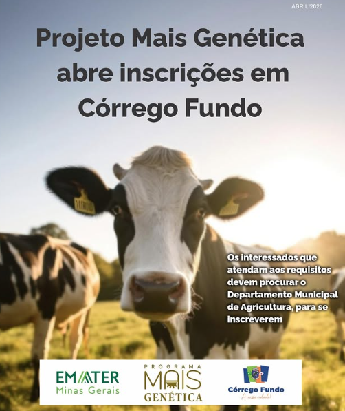 Estão abertas as inscrições para participação no Mais Genética, para produtores do município de Córrego Fundo/MG. O projeto é uma iniciativa do deputado federal Emidinho Madeira, com apoio da Emater-MG (Empresa de Assistência Técnica e Extensão Rural do Estado de Minas Gerais) e das prefeituras municipais.