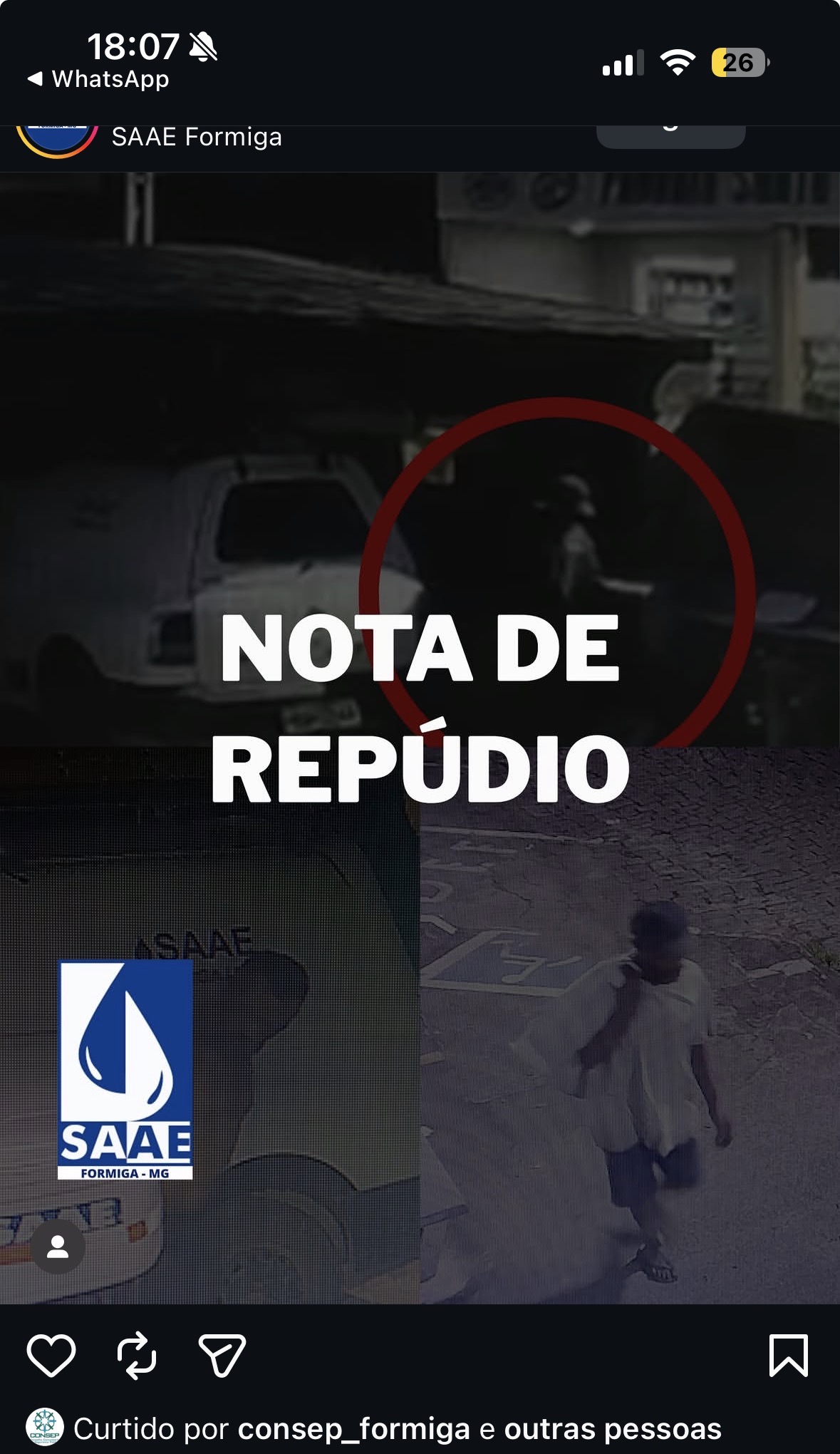 Tão logo identificado o ocorrido, o SAAE Formiga adotou todas as providências cabíveis, com registro imediato de Boletim de Ocorrência e acionamento das forças de segurança.